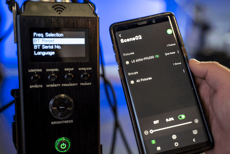 The LS 600d has built-in Bluetooth Mesh with a range of up to 80 meters. I can stand at the camera monitor with my iPad and adjust the key light, fill light, and hair light instantly. It supports all the standard lighting effects (Paparazzi, Fireworks, Lightning, etc.).