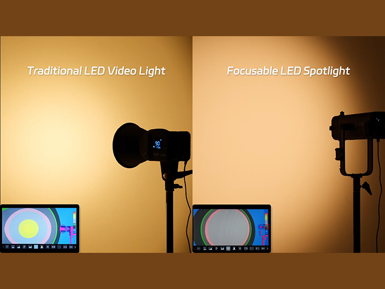 Both systems support Bowens-mount softboxes, grids, and snoots. However, because LED is a constant source, using a “Fresnel” or a “Spotlight Mount” allows for incredibly theatrical, hard-edged light that is much harder to preview with a strobe’s modeling light.